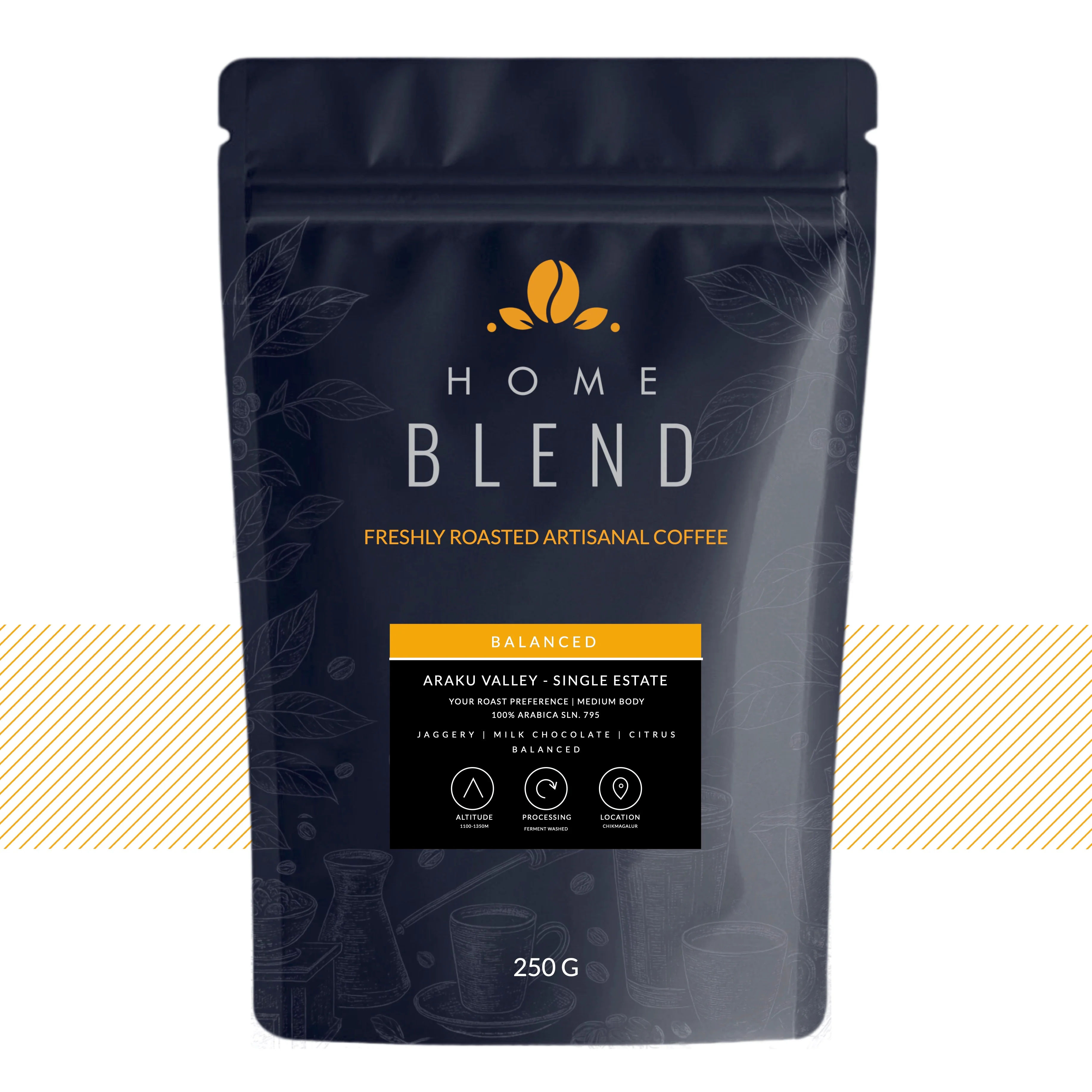 Whole Bean - Araku Valley - Pack of 250g by Home Blend Coffee Roasters | Indian Coffee Beans | Indian Coffee Beans