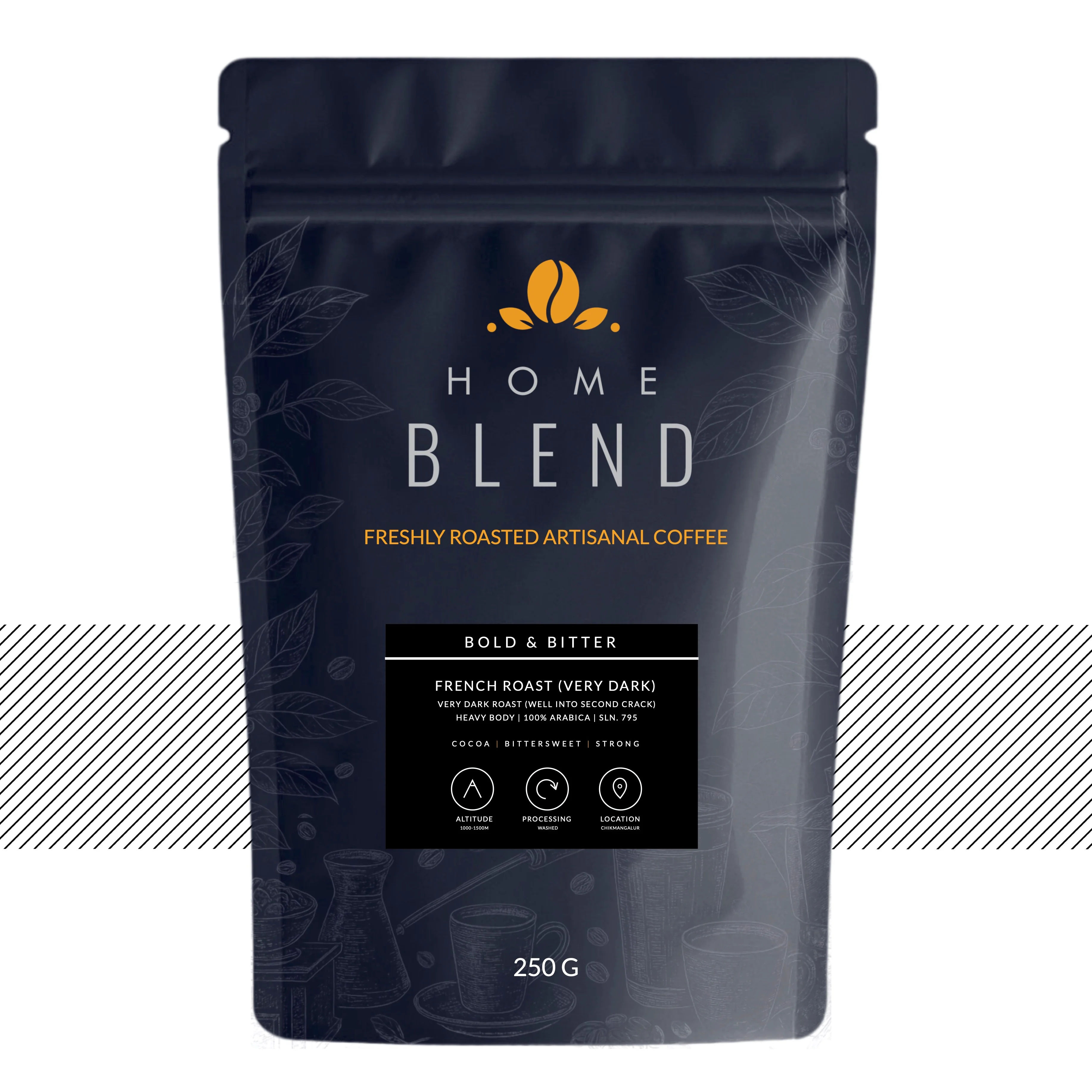 Whole Bean - French Roast (Very Dark Roast) - 100% Arabica - Pack of 250g by Home Blend Coffee Roasters | Indian Coffee Beans | Indian Coffee Beans