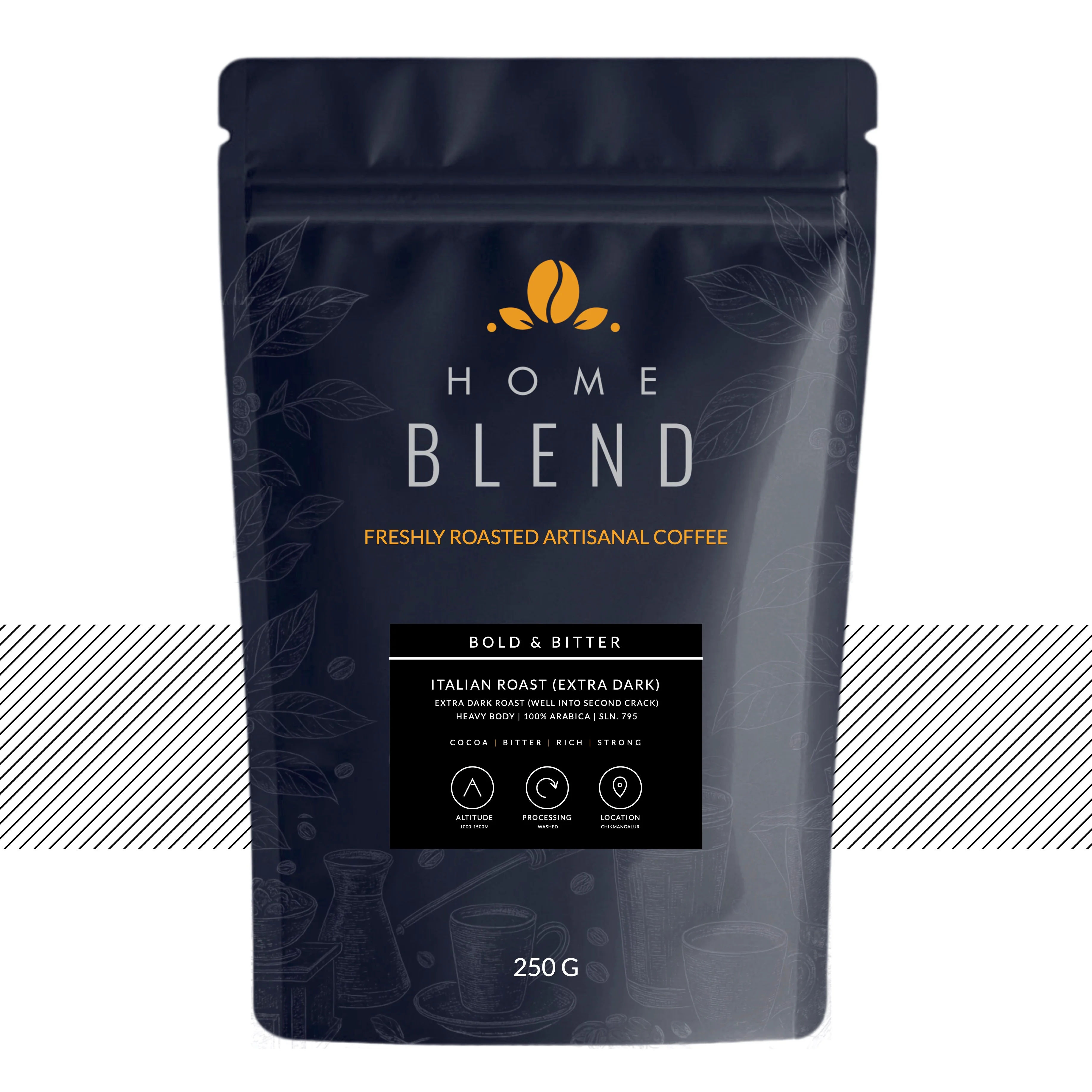 Whole Bean - Italian Roast (Extra Dark Roast) 100% Arabica - Pack of 250g by Home Blend Coffee Roasters | Indian Coffee Beans | Indian Coffee Beans