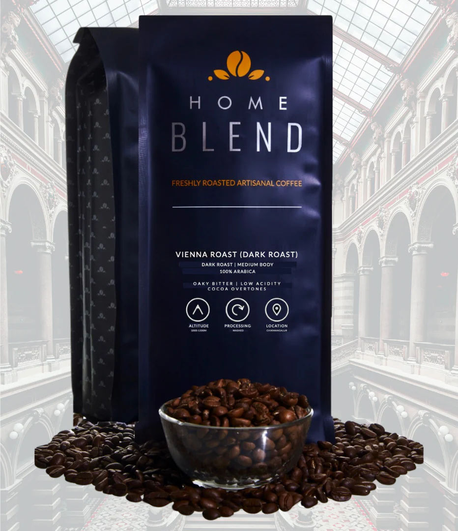Whole Bean - Vienna Roast 100% Arabica - Pack of 1 KG by Home Blend Coffee Roasters | Indian Coffee Beans | Indian Coffee Beans