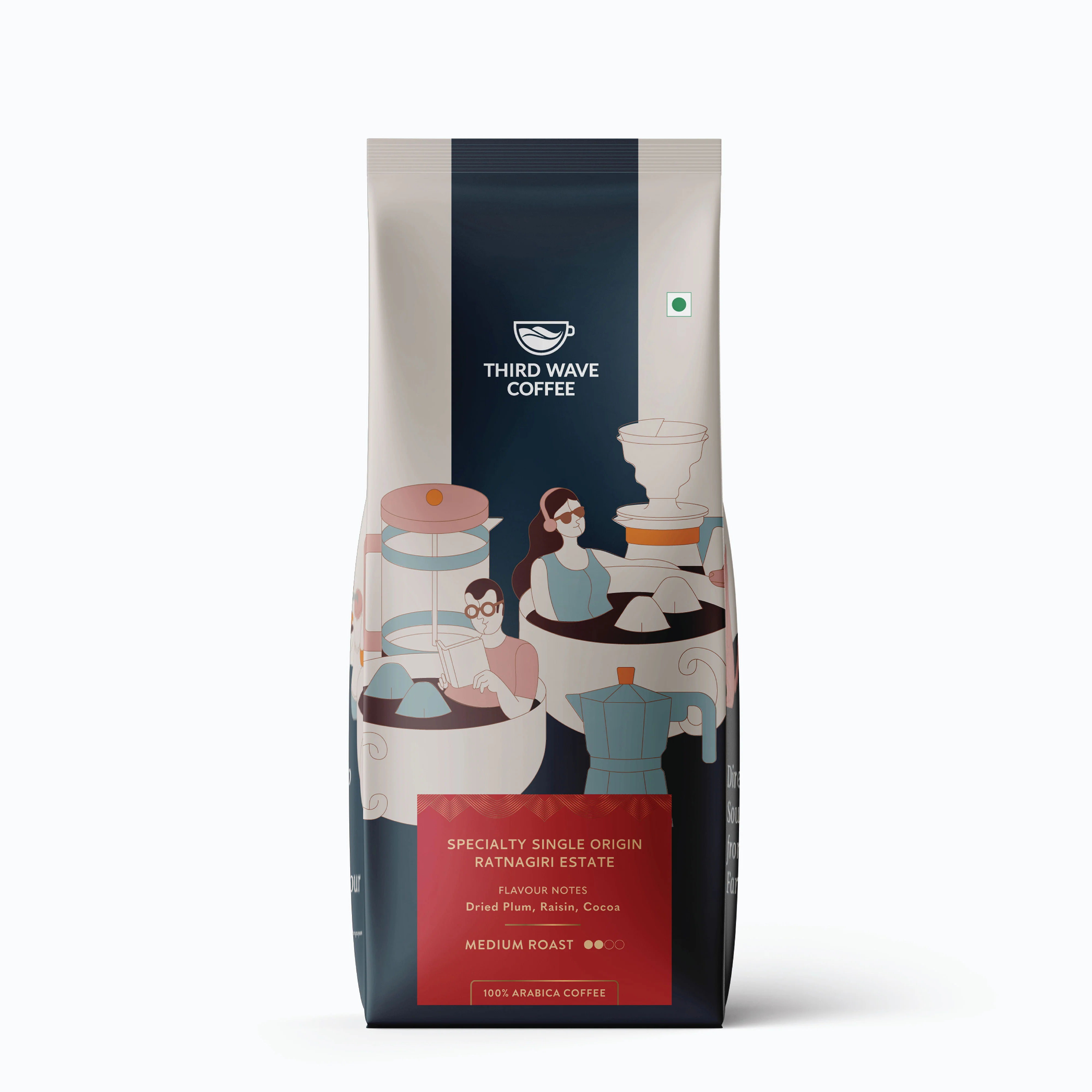 Grown on the lush slopes of the Ratnagiri estate in Karnataka, this medium-roast coffee showcases the depth and elegance of its terroir. Carefully hand-picked and expertly roasted, the beans develop a rich, comforting profile.